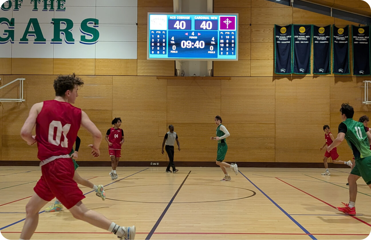 QS Basketball + Quickscore LED Scoreboards enable schools, universities, facilities, and clubs to run matches professionally and monetise fan engagement.