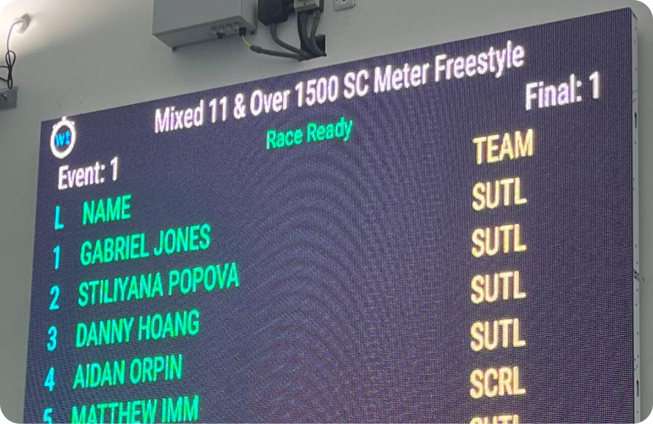 The complete scoreboard and event-management solution for swimming clubs, schools, and professional competitions.